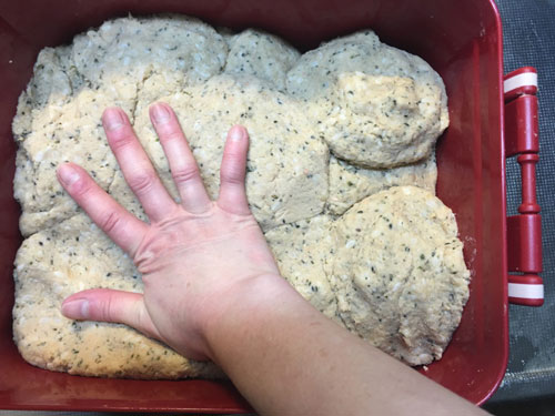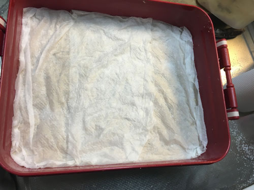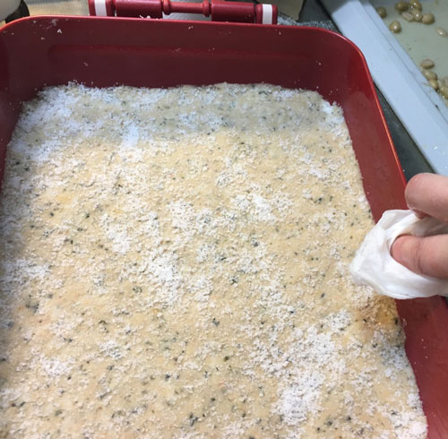 ⑧しっかり空気を抜いて密着させる。表面を平にしたら、塩を振る