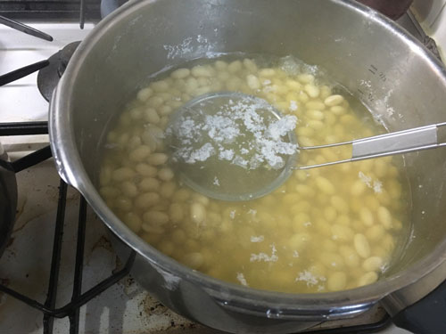 アクが出てくるので、すくいましょう。