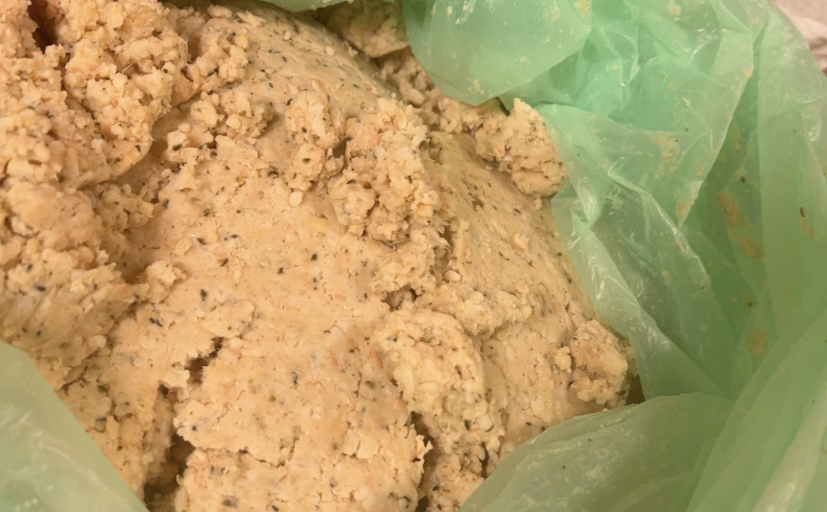 つぶした大豆、ヘンプシードナッツをしっかり混ぜ、